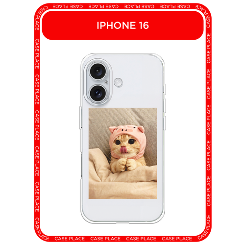 Чехол на Apple iPhone 16 / Айфон 16 с принтом Котик в розовой шапочке, прозрачный