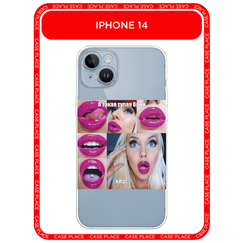 Чехол на Apple iPhone 14 / Айфон 14 с принтом Я такая тупая девушка, прозрачный