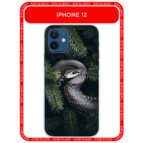 Чехол на Apple iPhone 12/12 Pro / Айфон 12/12 Про с принтом Серая змея на ёлке
