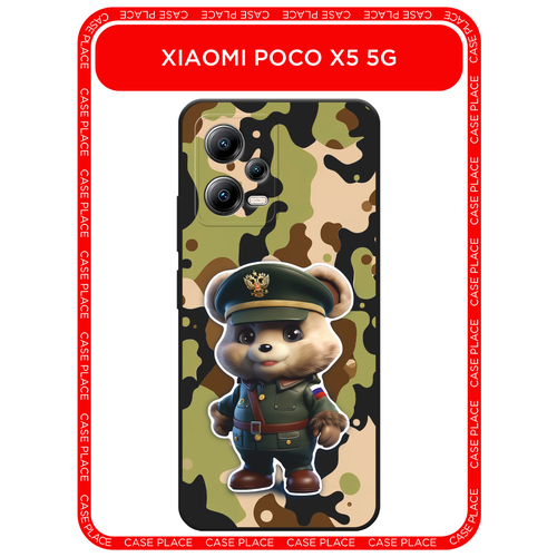 Черный матовый чехол на Xiaomi Poco X5 5G / Сяоми Поко X5 5G с принтом Мишка в форме 5