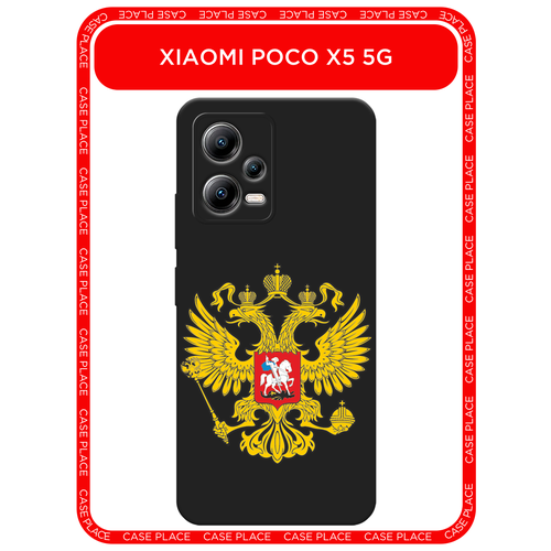 Черный матовый чехол на Xiaomi Poco X5 5G / Сяоми Поко X5 5G с принтом Государственный герб