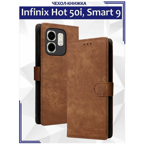 Чехол книжка для Infinix Hot 50i, Smart 9 c магнитной застежкой / Хот 50i, Смарт 9 c отделением под карты (коричневая)