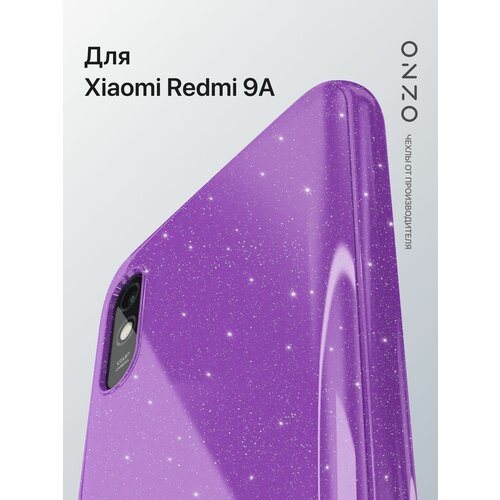 Чехол на Xiaomi Redmi 9A фиолетовый с блестками Чехол на Ксиоми Редми 9А