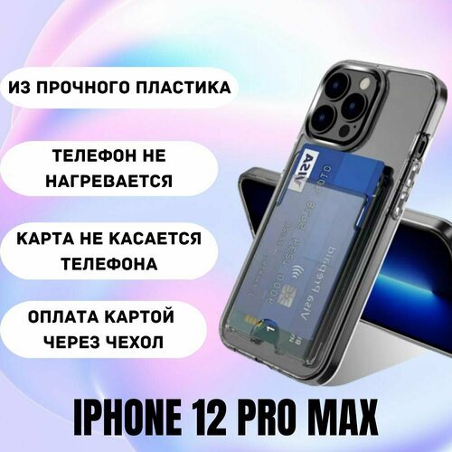 Чехол на айфон 12 Pro Max противоударный с карманом для карт / пластик + TPU