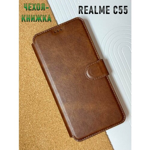 Чехол книжка для Realme C55 кожаный с магнитной застежкой, Реалми Ц55 с хлястиком, с функцией подставки