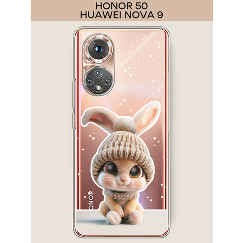 Силиконовый чехол "Крольчонок в вязаной шапке 2" на Honor 50/Huawei Nova 9 / Хонор 50, прозрачный