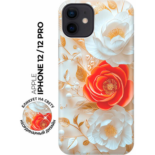 Силиконовый чехол на Apple iPhone 12 / 12 Pro с принтом "Роскошные пионы"
