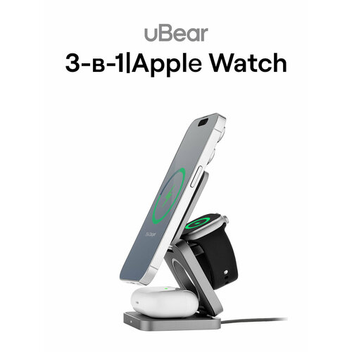 Док-станция беспроводной зарядки uBear Balance 3-в-1 для Apple Watch 25Вт, цвет серый