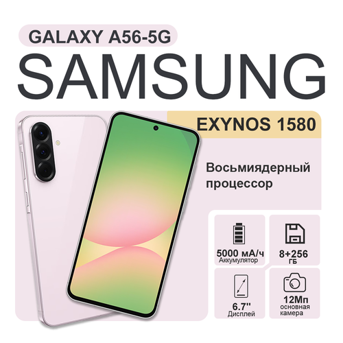 Смартфон Samsung Galaxy A56 12/256Gb, Pink (Розовый), Global