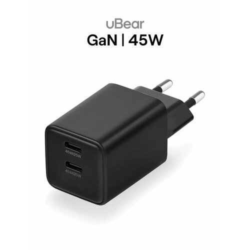 Блок питания TYPE-C uBear Bridge (2xUSB-C), 45 Вт, GaN + Super Fast Charging с поддержкой протоколов быстрой зарядки