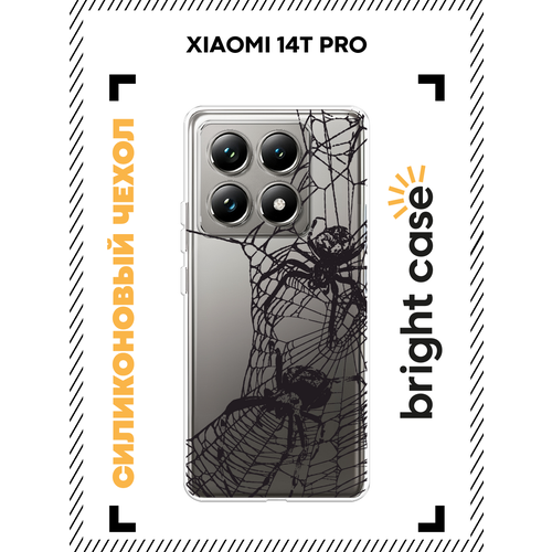 Чехол на Xiaomi 14T Pro / Сяоми 14T про с принтом Черные пауки, прозрачный
