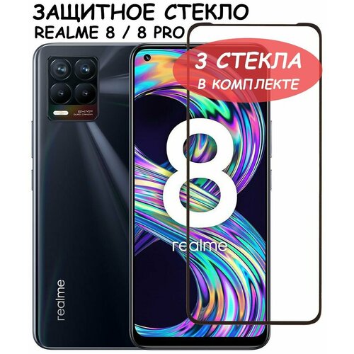 Защитное стекло "Полное покрытие" для Realme 8/8 Pro / Реалми 8 / 8 про Черное - 3 стекла в комплекте