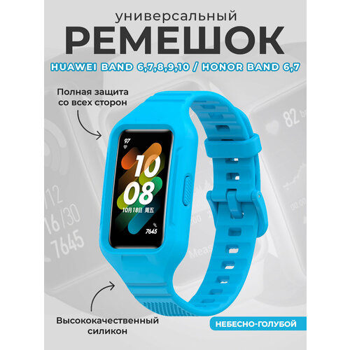 Универсальный силиконовый ремешок для Huawei Band 6,7,8,9 / Honor Band 6,7, небесно-голубой