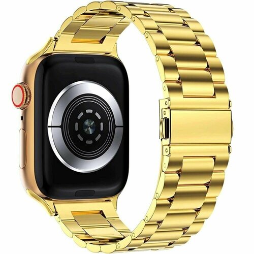 Ремешок для смарт-часов, фитнес-браслета Apple Watch Series 1-9 металлический железный стальной блочный браслет эпл вотч 38/40/41 мм, золотой