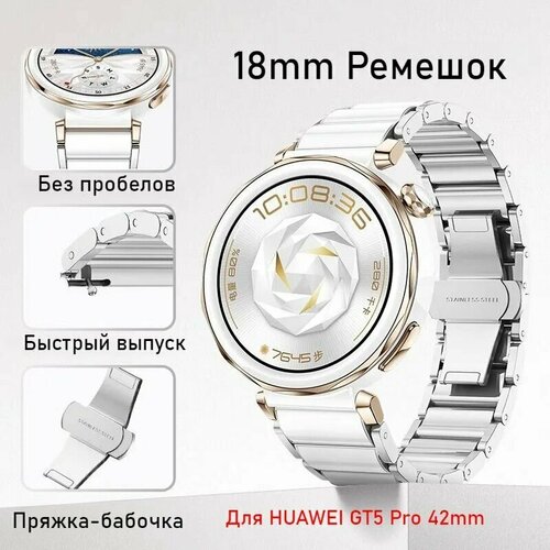 Керамический ремешок для часов диаметром 18mm,для HUAWEI Умные часы Watch 5 Pro (42mm),металлокерамический браслет