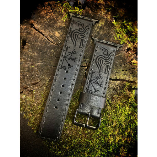 Ремешок из натуральной кожи для Apple Watch 42/44/45 mm / Ворон / 170-200мм /