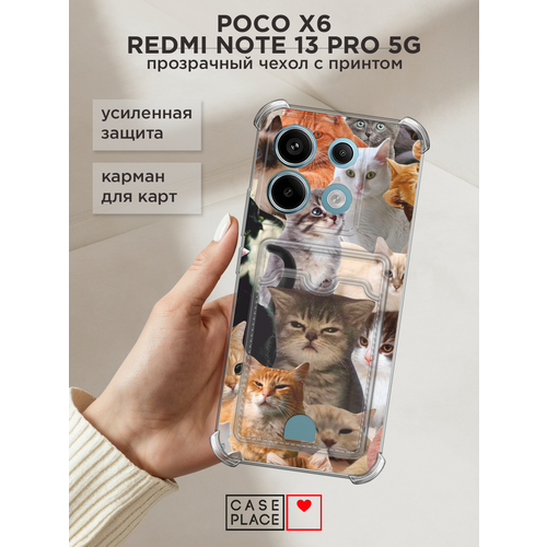Чехол на Poco X6/Redmi Note 13 Pro 5G (Поко X6/Редми Нот 13 Про 5G) с картой и принтом Мемные коты