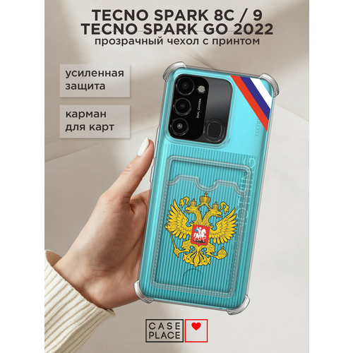 Чехол на Tecno Spark Go 2022/8C/9 (Текно Спарк Го 2022/8C/9) с картой и принтом "С гербом России"