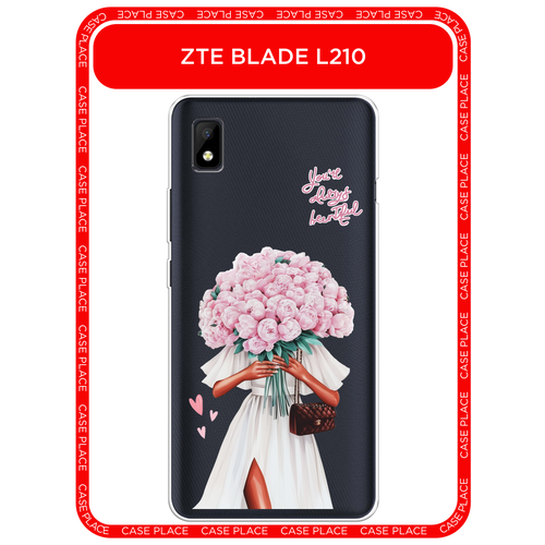 Чехол на ZTE Blade L210 / ЗТЕ Блейд L210 с принтом Девушка с букетом пионов, прозрачный