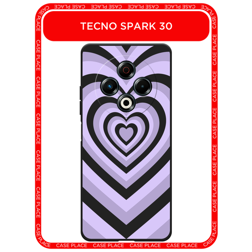 Черный матовый чехол на Tecno Spark 30 / Текно Спарк 30 с принтом Blue heart latte
