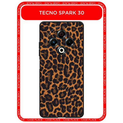 Черный матовый чехол на Tecno Spark 30 / Текно Спарк 30 с принтом Шкура леопарда