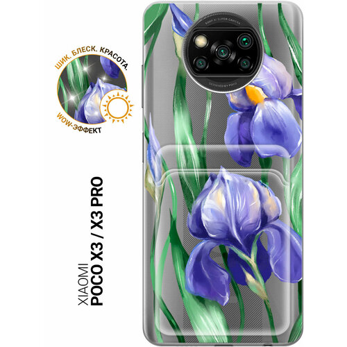 Силиконовый чехол на Xiaomi Poco X3 / X3 Pro / Сяоми Поко Х3 / Х3 Про с рисунком "Amazing Irises" и карманом для карт прозрачный