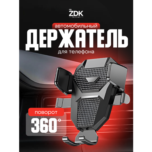 Держатель-подставка для телефона в автомобиль ZDK Car, цвет черный, поворот 360 градусов