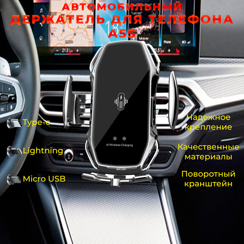 Держатель для телефона в машину A5S, зарядное устройство и подставка для телефона в автомобиль, серебро