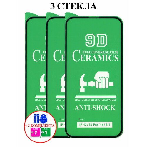 Защитная керамическая пленка-стекло для Apple Iphone 14 / Iphone 13 / Iphone 13 Pro, комплект 3 шт, 9D, с рамкой