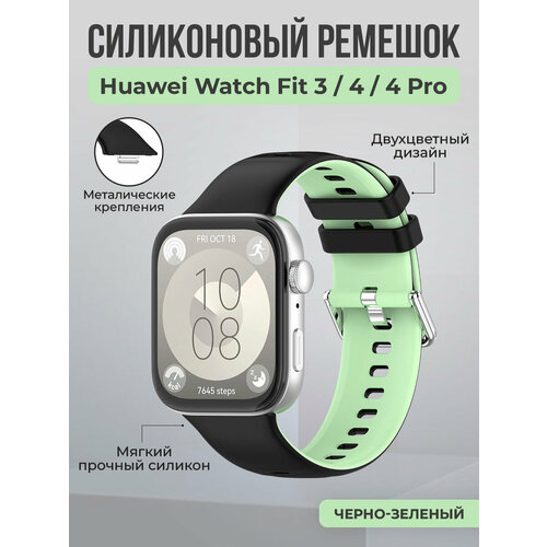 Двухцветный силиконовый ремешок для Huawei Watch Fit 3/4/4 Pro, черно-зеленый
