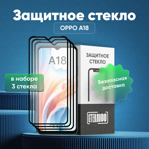 Набор защитных стекол для OPPO A18 c полным покрытием, серия Стеклофф Base, 3 шт