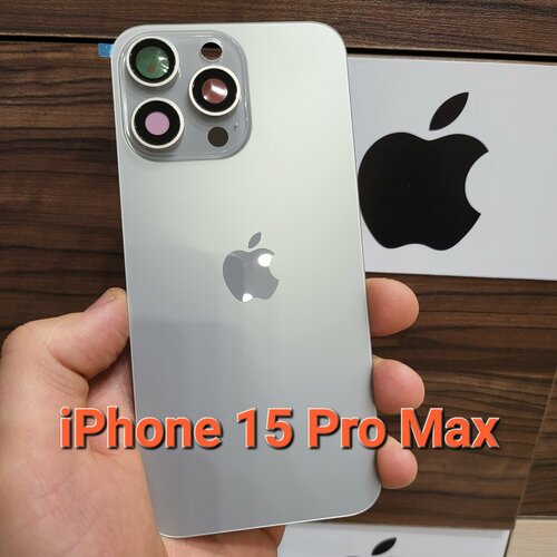 Крышка для iPhone 15 Pro Max - задняя стеклянная панель "Оригинальное качество" (Цвет: Natural Titanium)