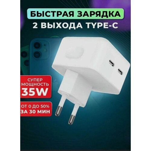 Адаптер сетевой 35W / Сетевое зарядное устройство для iPhone / iPad / AirPods / 2*USB-C/ Fast Charge/ white