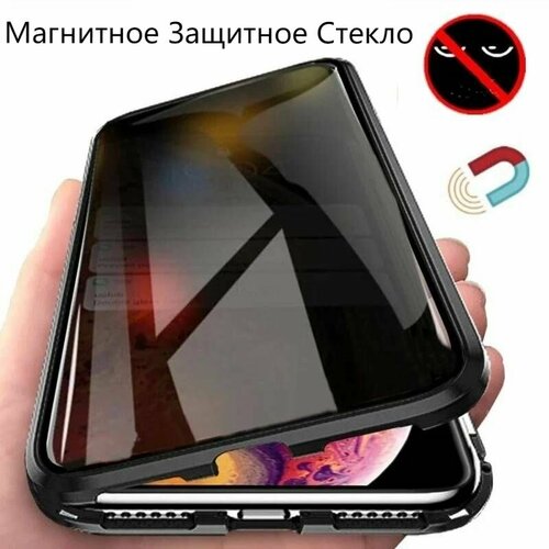 Магнитный металлический чехол для iPhone 15 Pro Max с антишпионским стеклом и двойным защитным стеклом Обложка, Черный