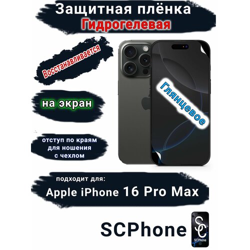 Защитная плёнка на экран для Apple iPhone 16 Pro Max глянцевая гидрогелевая стандарт под чехол с вырезом острова