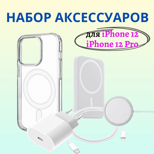 Набор 5 в 1 для IPhone 12/PowerBank MagSafe/Чехол MagSafe/Беспроводная зарядка/Адаптер питания Type-C/КабельType-C- Lightning