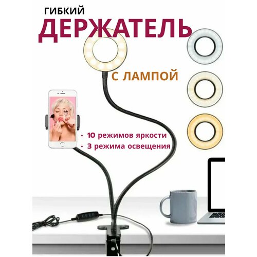 Держатель для телефона с лампой гибкий с креплением, настольная подставка, штатив для смартфона с зажимом, селфи-лампа