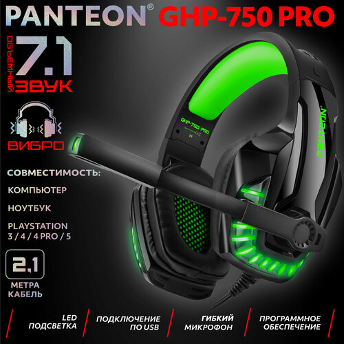 Проводные наушники PANTEON GHP-750 PRO, зеленый/черный