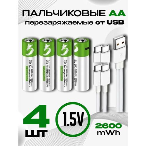 Аккумуляторы SMARTOOOLS, перезаряжаемые Li-ion, АА, быстрая зарядка USB Type-С, 2600mAh, 4шт. Пальчиковые.