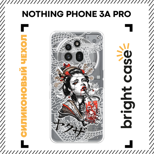 Чехол на Nothing Phone 3a Pro / Нофинг Фон 3а Про с принтом Гейша с напитком, прозрачный