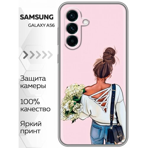 Чехол для Samsung Galaxy A56 с принтом Девушка и букет (Самсунг Галакси A56)
