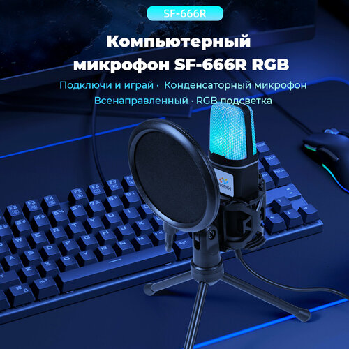 Компьютерный микрофон Ecovinka SF-666R RGB С USB-разъемом,Всенаправленный,черный