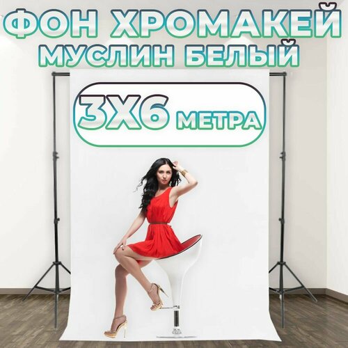 Фон Хромакей тканевый Муслин 3x6м Белый