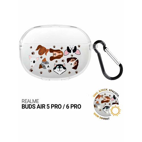 Чехол на Realme Buds Air 5 Pro / 6 Pro с принтом "Dogs Pattern" прозрачный