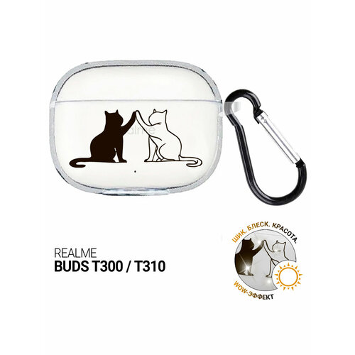 Чехол на Realme Buds T300 / T310 с принтом "Cats" прозрачный