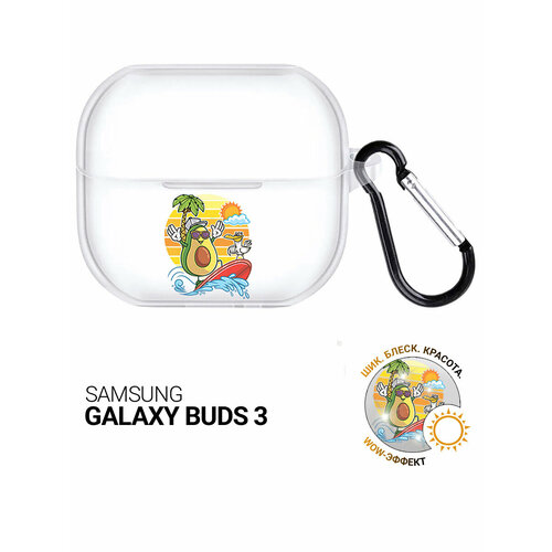 Чехол на Samsung Galaxy Buds 3 pro с принтом "Avocado Surfer" прозрачный