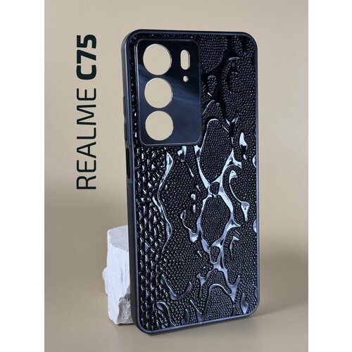 Чехол кожаный на Realme C75 / Чехол на Реалми С75 с защитой камеры, змея