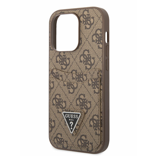 Guess для iPhone 14 Pro Max чехол PU 4G Double cardslot Metal triangle logo Hard Brown