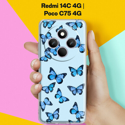 Силиконовый чехол на Xiaomi Redmi 14C 4G / Poco C75 4G с принтом "Бабочки" с прозрачными бортиками
