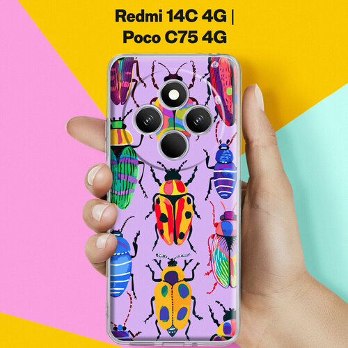 Силиконовый чехол на Xiaomi Redmi 14C 4G / Poco C75 4G с принтом "Жуки" с прозрачными бортиками
